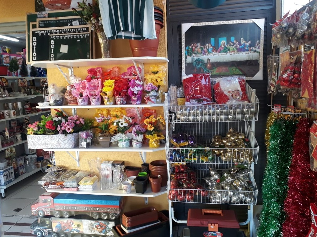 Temos presentes, utilidades, material escolar, embalagens, produtos para festa.